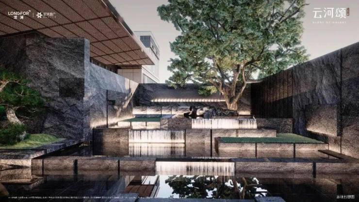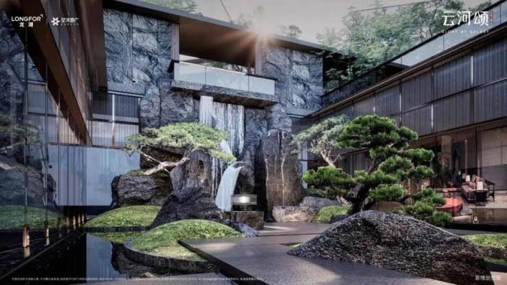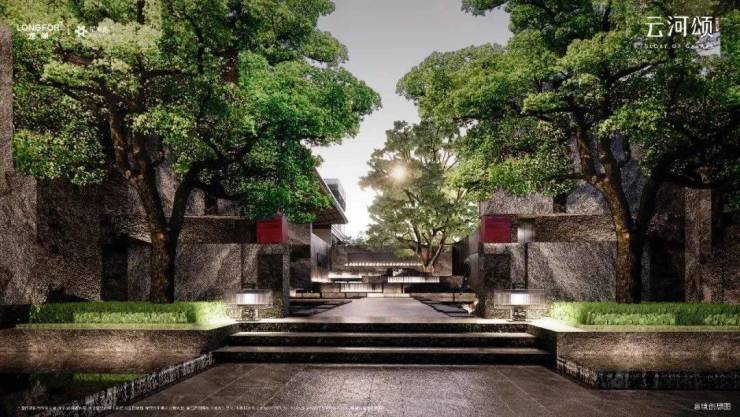 未来之瞳·云河颂,以隐奢院落式门庭礼序,三折三进的空间制式,打造“安缦式”隐奢豪宅美学界面。