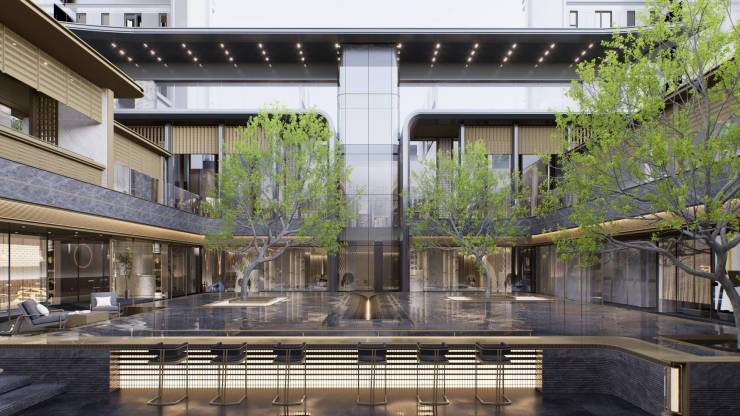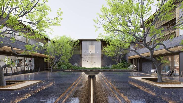 项目整体景观呈现“一轴、双芯、多院落”布局形式,融合东方造园理念与城市人文特色,在园林设计上打造五进制归家院落,以山水自然“入画”,营造丰富自然景观及互动空间。从入口礼序、邻里社交、层叠景观到入户私境,用自然笔触描绘生活的诗意,于森境居所中回归生活本色。