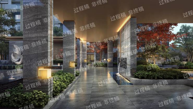 打造约1380㎡灵动水境,从“曲江流饮”中汲取灵感,以叠水、静池、瀑布等多种形态,再现盛唐曲江池的开放与灵趣,重塑当代社区的亲水生活范本。