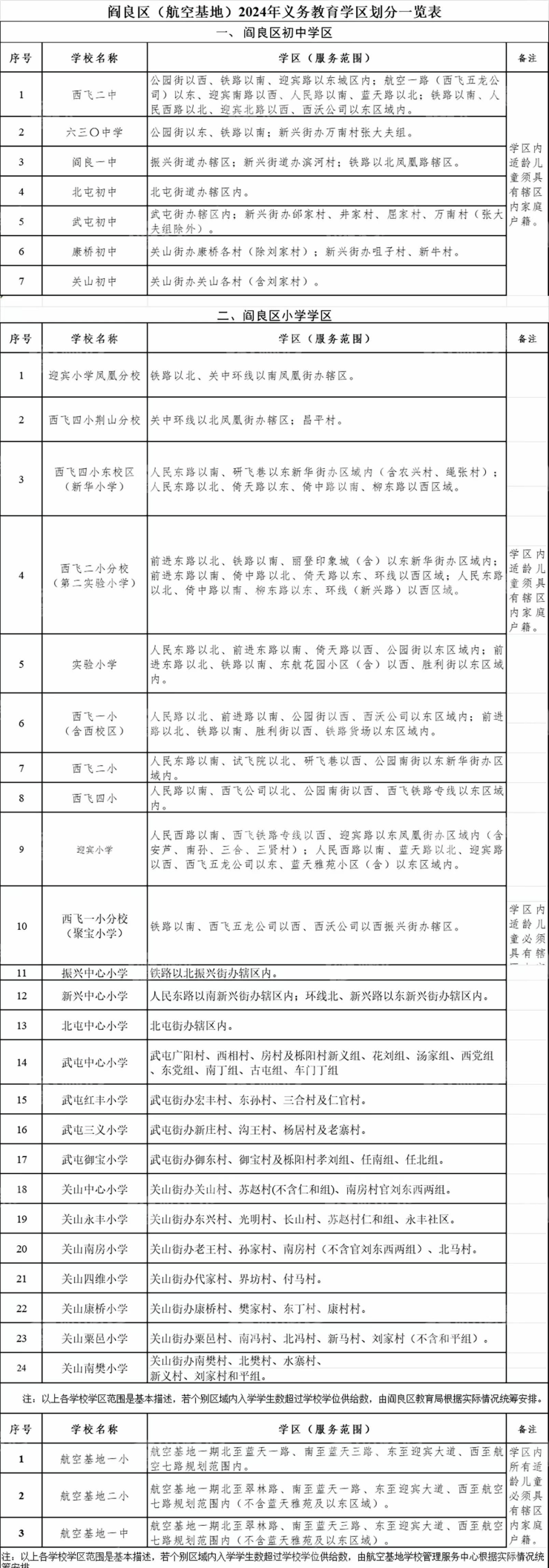 2024年西安市阎良区(航空基地)义务教育公办学校学区划分公布