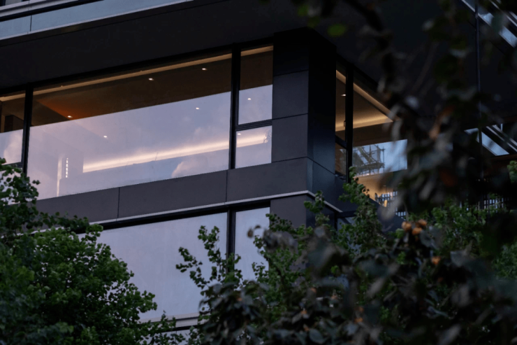 整个项目的主立面打破了传统建筑平铺的呆板立面,而是以玻璃幕墙为主,搭配石材及铝板设计,再辅以金属材质所包裹的流线感,形成了层次感十足的深色钻石光感立面。