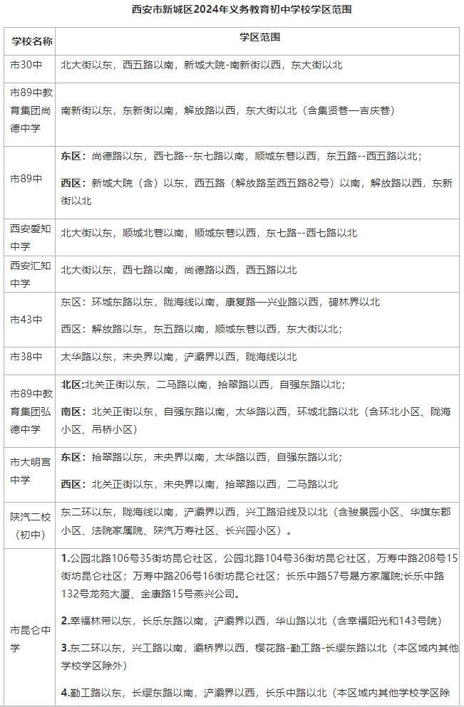 西安市(新城区)教育局2024年义务教育学校学区划分方案