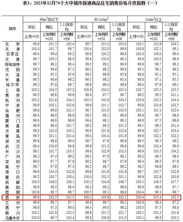 数据显示,11月西安新房环比涨幅上涨0.2%,同比上涨4.1%。