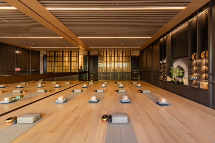 就例如郑州的越秀·天悦江湾,除了外部的流瀑、水景、环座,满足邻里交流、私人放松的需求,更在会所内部设置健身房、私宴厅、茶饮室、瑜伽室、泳池等多元高定酒店般的配置,让业主可以足不出户,便如度假般享受理想生活。