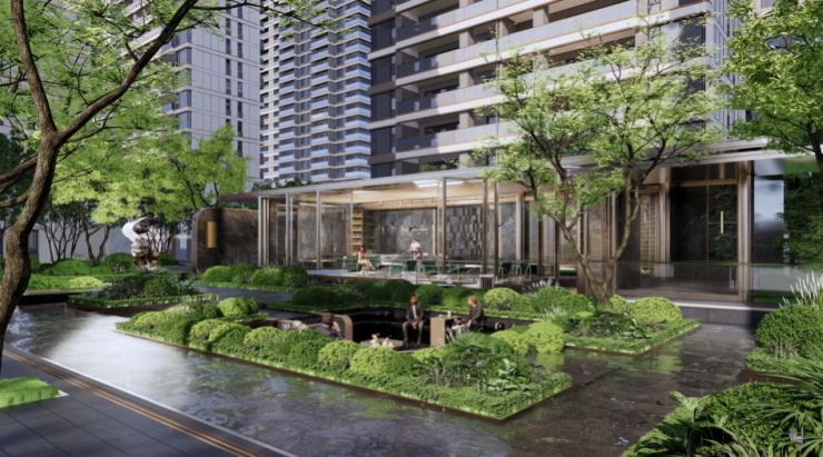 例如越秀·天悦江湾,就在城市空间之上,主动进行景观的打造提升,与城市滨水绿道相呼应,形成更好的城市景观界面,将社区包裹在绿意之中。
