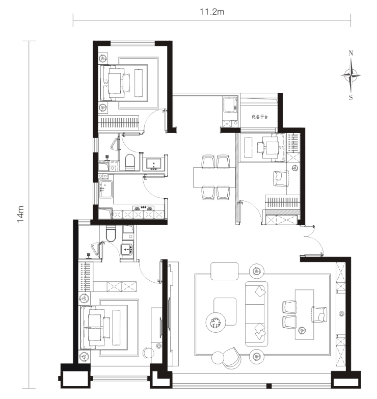 •低门槛、高得房率、南北通透、实用性强;年轻家庭入主高新的最佳选择户型