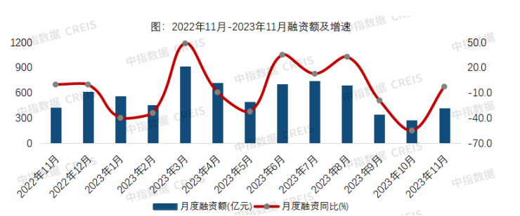 无论如何,房企融资通路的确是好转了。今年11月份单月房地产企业债券融资总额达412.8亿元,环比大幅增长49.4%,宽松政策仍在落地,若后续保持和发力,民企大抵是能够“活下去”的。