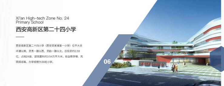 西安高新区第二十四小学(西安梁家滩第一小学)位于大吉环道以南,灵秀一路以西,灵韵一路以北。总投资约2.59亿,占地24亩,建筑面积约3.54万平方米。包含教学楼、风雨操场等。办学规模为36班小学。