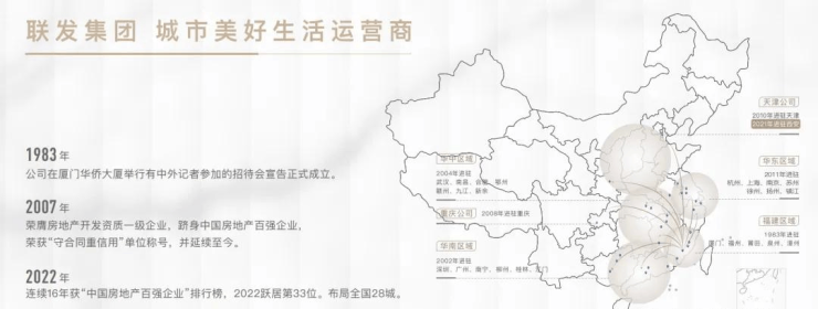 联发集团系《财富》世界500强建发集团旗下核心企业。40载品牌国企,连续17年荣膺中国房地产百强企业,2023年位列中国房地产百强第28位。布局全国28城,为超48万业主提供品质人居和服务。联发悦春山是联发进入西安的第一个项目。