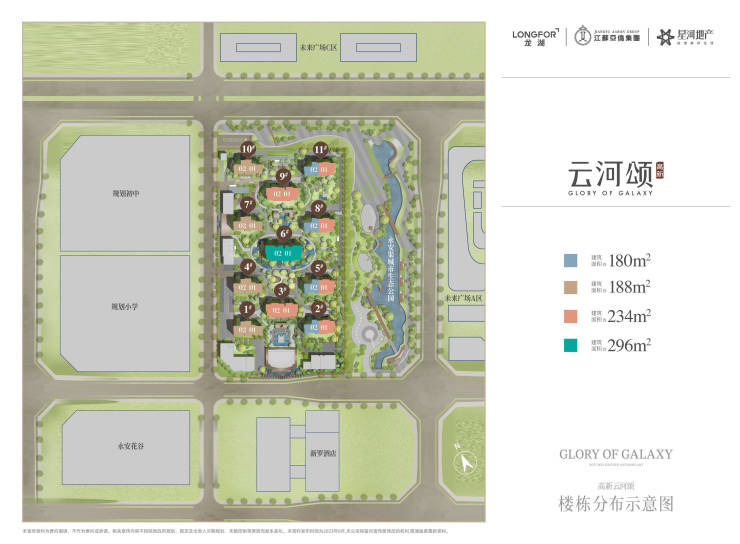 项目总占地64亩,容积率2.79,绿地率35%,共12栋住宅,面积段182-249㎡,21F-25F不等。