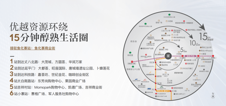 项目位于科技路黄金主轴之上,项目东侧是高新一期核心成熟配套,生活圈优享西安顶级资源配套。项目西南侧,一路之隔为高新区发展潜力方向——丝路软件城,该区域定位万亿智慧产业高地,聚集西安90%以上的软件企业,华为、阿里巴巴、三星等世界500强企业30余家,是当仁不让的产业龙头。