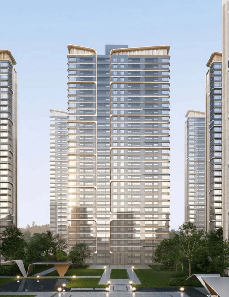 同频世界审美的现代公建化立面,平滑界面搭配香槟金曲线铝板,辅以顶部朱雀展翅之形态,构建高阶建筑艺术封面,宽幕阔境带来通透采光视野,为舒适人居革新。