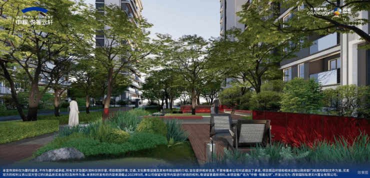 其四,森奢园境:园林景观构成社区美好背景,悦著云轩采用酒店式入户大堂,营造高奢诗意氛围,穿堂入园,叠泉石涧、林涧密庭、林下廊架、溪流跌水、阳光草坪、儿童天地、茶语空间等主题场景如珠贝散落,归家即度假,下楼即入园。