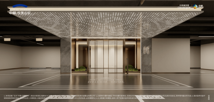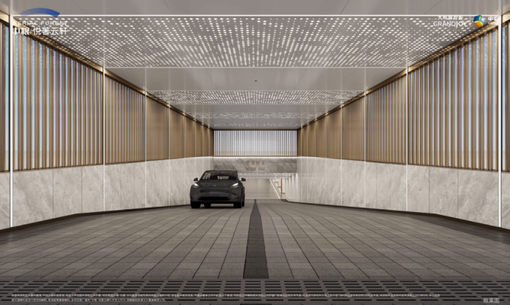 当然,视线从屋檐到地面,格外值得一提的,还有悦著云轩的高标准精装地下车库,这一次中粮再次升级场景感,西入口坡道采用星空顶造型设计,再加上金属格栅,在灯光的渲染之下,形象鎏金镀银光彩熠熠,地库大堂明亮宽敞,轻奢与私密的奢华感无声流淌。