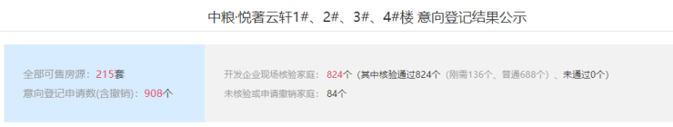 时值年末,百盘促销,中粮·悦著云轩依旧逆市热销。12月份,第三批次线上登记,215套房源、824个家庭通过核验,再次摇号,整体中签率仅有26%!