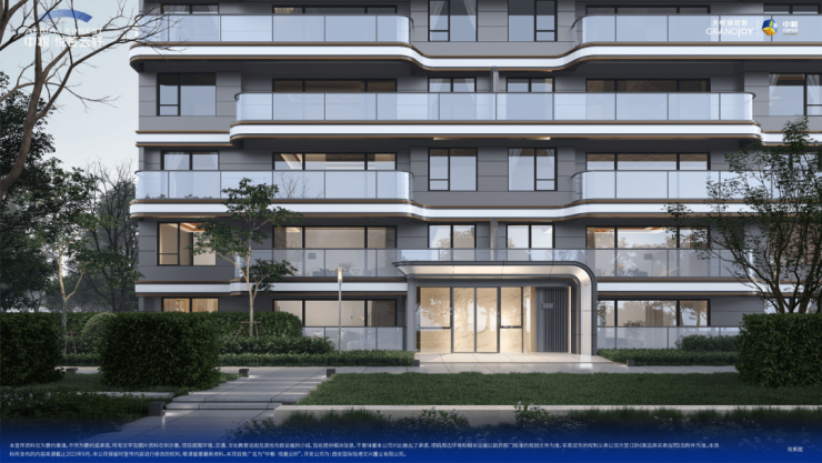 其一,高颜流光立面:中粮·悦著云轩立面承袭美学基因,曲线的超流体美感,直线的横向拉通、立体的视觉堆叠,造就了项目高辨识度。再搭配宽屏玻璃幕、香槟色铝板点缀,一切化繁去简,构筑流光天幕立面,构成奥体中心高颜之一。