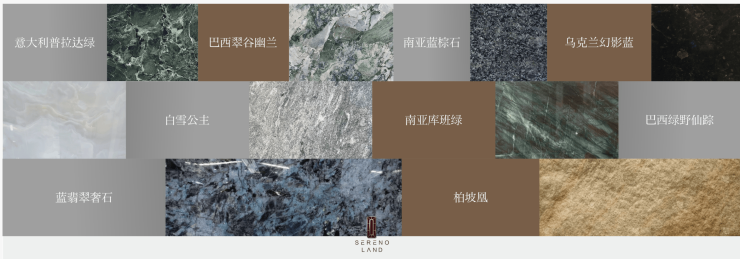 整个公区引入南亚库邦绿、意大利普拉达绿、乌克兰幻影蓝、稀产柏坡黄等近十余种全球奢石,宛如一座流动的奢石博物馆,让艺术融入日常归家动线。