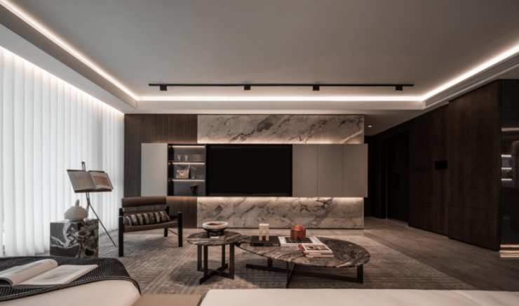 归家大堂采用一体化设计手法,约62米奢阔尺度社区大堂,约5.5米入口挑高大檐,三周幕墙设计,结合灯光及金属运用提升空间层次,温馨的浅米色运用,优雅流淌于表。