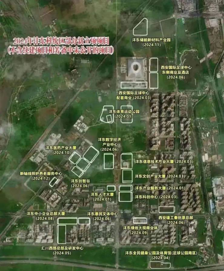 此外,近期一张2024年沣东科统区部分新立项项目,大量产业园区、总部大厦及城市配套明年还将继续开工。