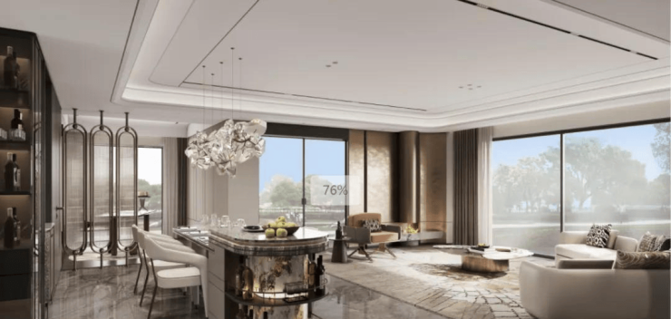 将客厅、餐厨、主卧与空中庭院相连,从传统“LDK”到“LDKG”再到 “LDKBG”(即客厅、餐厅、厨房、阳台、庭院一体化),将日常生活场景全面优化提升,整合公区活动空间,避免空间浪费,为家庭生活和社交带来全新体验。