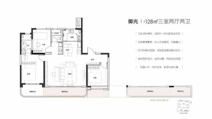特别值得一提的是,目前整个西安市场、特别是奥体核心区,基本上只有140㎡以上户型才拥有的露台,在鼎城御峰里,128㎡的三房就能享受到,这点非常稀缺。