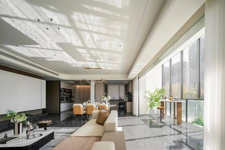 项目以第四代住宅为核心价值,在1梯1户的小高层户型设计上,奇偶错层、全系露台,每户都有挑高6.3米、270°曲面屏的“空中庭院”,除了采光观景,还能装下许多居家功能:清晨看日出、夜半看星空;春时看百花、夏日则烧烤;闲暇时看书、快乐时聚会,从地下到天空,这才是理想生活。