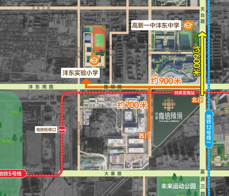 出行易:距离地铁5号线阿房宫南站约50米(雁鸣湖- 创新港)12号线阿房宫站约80m(在建中)