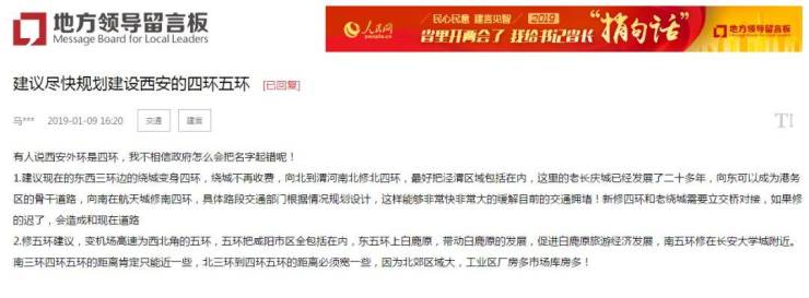 2019年1月,西安市规划局公开回复网友提问,明确了西安环线的的规划方向!