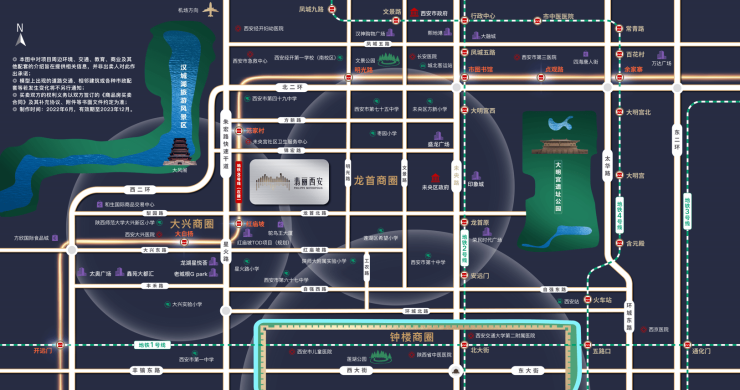 临近两处国家级遗址公园配套,项目向西约1.3公里处可抵达汉城湖公园, 向东约2.8公里处可抵达大明宫遗址公园,让休闲生活更静谧、随心、纯粹。