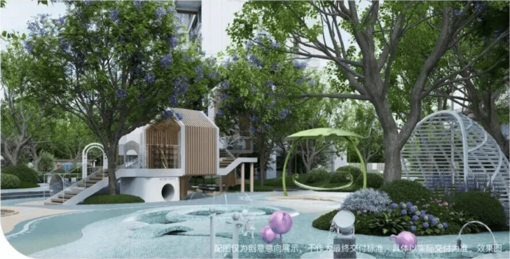 山丘营地:游乐设施与攀爬空间,容纳童趣欢乐的奇趣场地引力聚场:戏水装置搭配引力空间、火山蹦床等营造太空梦想