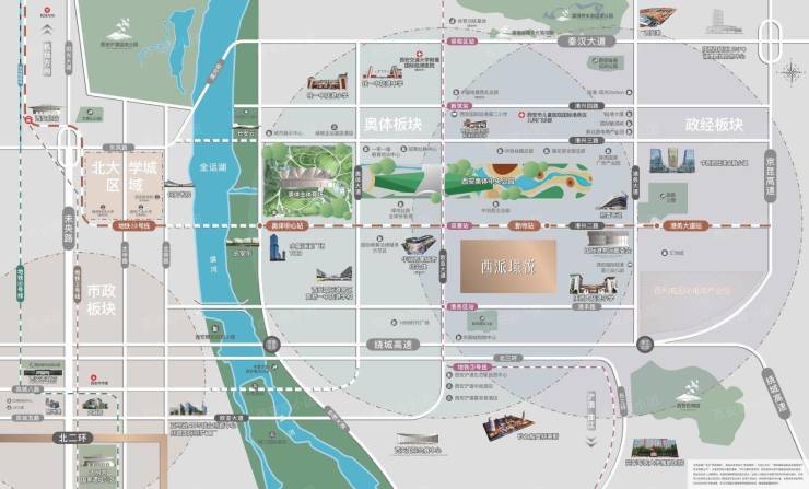 项目周边拥有多个公园,包括陆港灞河幸福岸线、浐灞国家湿地公园、新寺遗址公园、奥体中心公园、西安华夏文旅海洋公园和陆港足球主题运动公园。