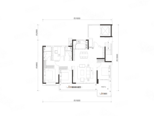 四室两厅两卫布局,四开间朝南,南向面宽达到约15米,还拥有超大观景阳台,挑高约6米,通风、采光俱佳,居住舒适度高;