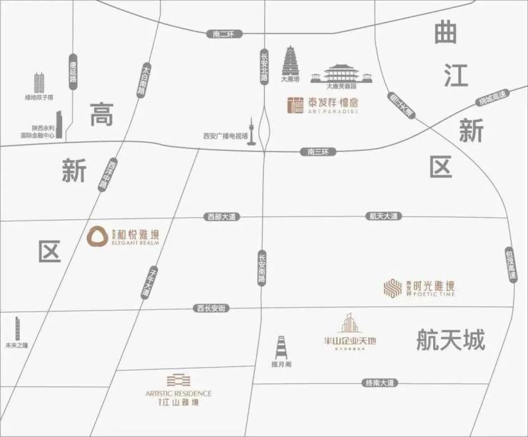 泰发祥和悦雅境位于城南西部大道板块,西临高新区,北临雁塔区电子城,南接长安大学城板块,处于高新、雁塔、长安大学城三区交汇位置。