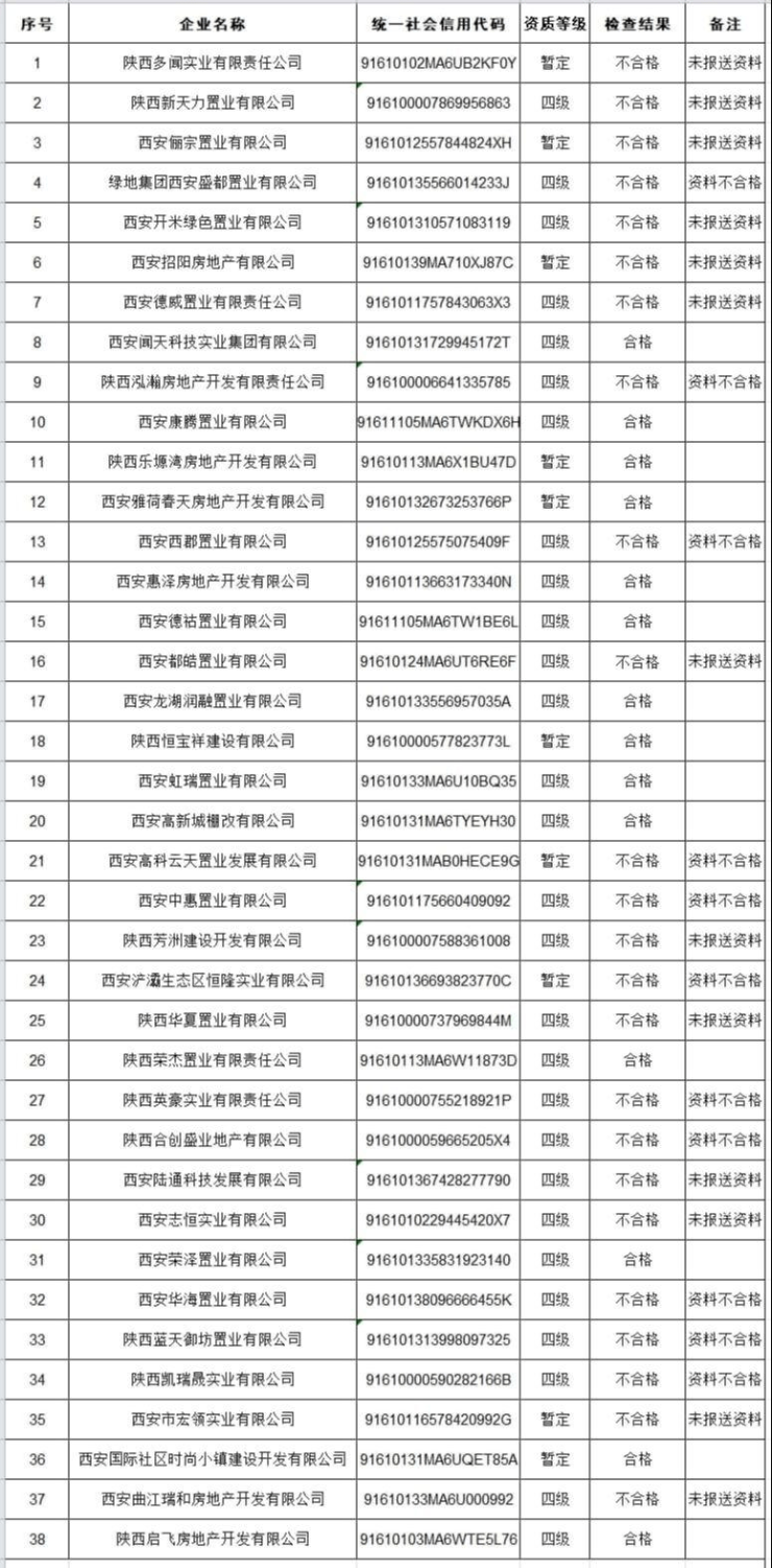 西安市住房和城乡建设局抽查38家房企,24家不合格