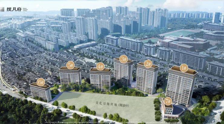 项目处于航天基地的揽月阁板块,容积率约1.2,是一个纯粹的低密住宅,拥有可以瞰景的豪宅气场。