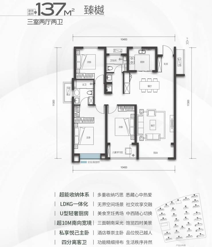 住宅地块规划户数2471户,共计29栋小高层住宅,户型面积段为95㎡-137㎡,均为三室两厅两卫格局。