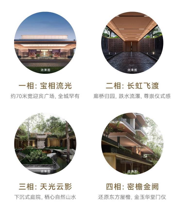 项目通过四相入园礼序,融入匠心设计工艺,令往来皆尊崇。
