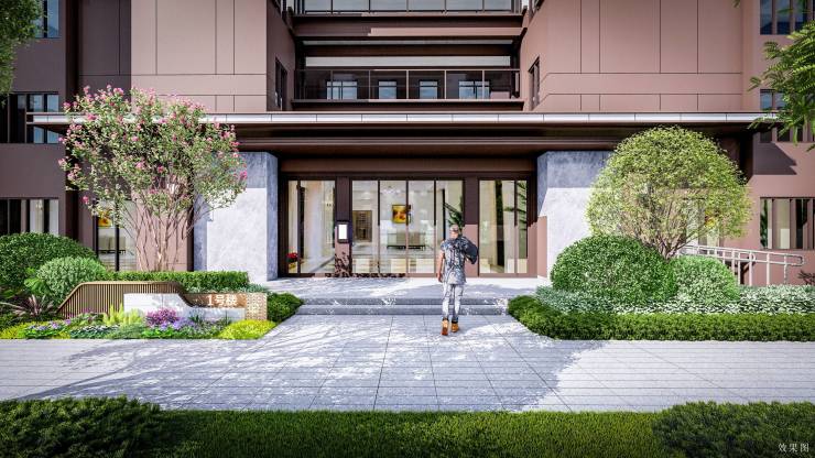 棠颂坊在楼宇排布上,结合项目整体地块方正的布局,强调建筑对位关系,楼位排布错落有致、南低北高,确保每一户拥有最好的景观视野、日照采光。主体采用咖色真石漆,结合灰色真石漆,搭配蓝灰色Low-E中空玻璃。