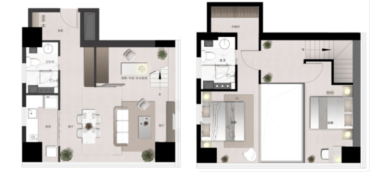 全国首创六合式LOFT,共享楼梯实现双层双门双套房