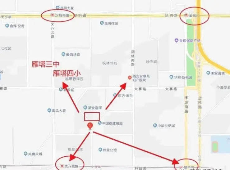 交通:项目周边路网发达,两金一粉构成城市交际圈。 两金:大寨路、沣惠南路、西二环与南二环交界处,处于南郊北郊,西郊主城的重要交通位置,距离项目仅1.5公里;丈八北路向南到南三环,距离项目仅3公里。