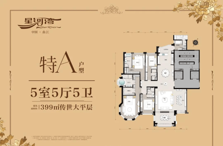 星中式传统美学布局,中轴贯连大境,南向最大约19.6m面宽,约3.5-3.6米层高设计,多厅恢弘建制,层峰荣耀气场,最大约80㎡星级主寝,全系规制,独享贵胄起居。