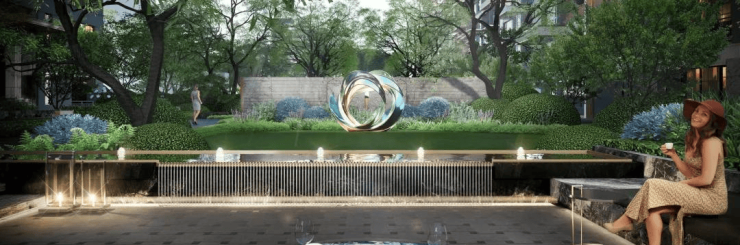 御湖境本次小区整体规划仿照纽约中央公园,在城市围合一片森林,打造大宅间,大轴线布局。首先,小区入户结合城市口袋公园,打造花园式归家大堂,给业主一种建在花园里的房子的居住体验。其次,通过楼体的合理排布,住宅部分的建筑密度低至20%,保证户户有晟景,户户有视野。