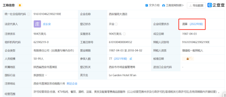 而企查查显示,目前该酒店状态为清算,而公司主要成员中显示总经理被限制高消费。