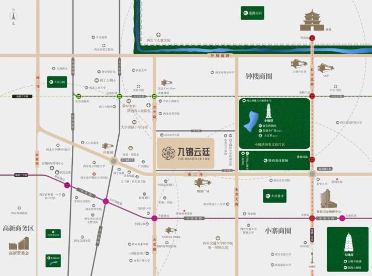 位置:位于西安市碑林区含光北路15号,南二环沿线,距离西安城墙不到2公里。