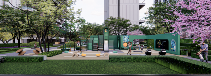 进入社区内部,基于低密土地的天赋优势,龙翔·奥城云玺东区(云樾)在园林设计上,也展现出了非凡之功。以世界八大名画的色彩与光影灵感,结合西安的历史文化底蕴,打造出“一层、两轴、六园”的全龄段互动式景观园林。
