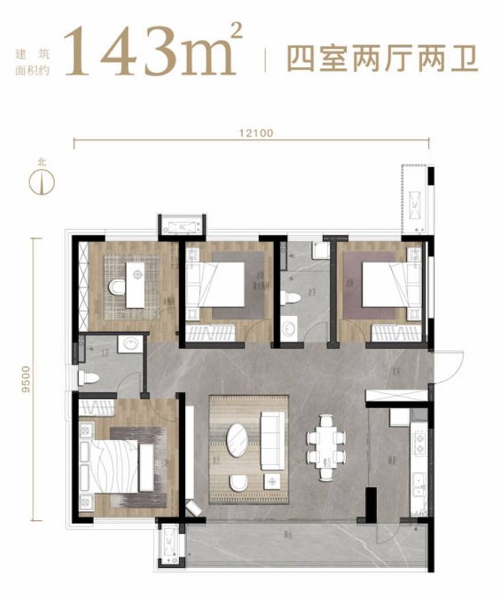 楼盘户型建面:120-143㎡