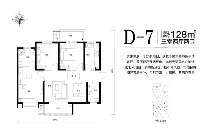 建筑面积约115—168㎡,主力户型为市场主流三房两厅两卫,全明通透,部分户型客厅双窗设计,南眺南山氤氲气象,东瞰长安中央公园,景观视野绝佳。