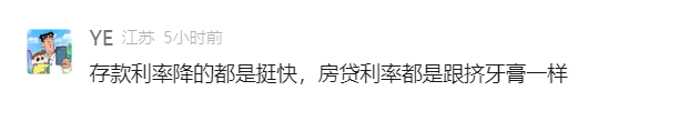 有网友评论:“存款利率降的倒是挺快,房贷利率很挤牙膏一样。”