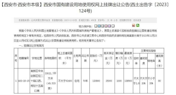 另外,本次挂牌宗地实行“限房价、限地价”出让,按照起始价12.08亿元来算,楼面价为13073元/㎡。当达到最高限价13.89亿元(楼面价15032元/㎡)时,转为公开摇号方式确定竞得人。