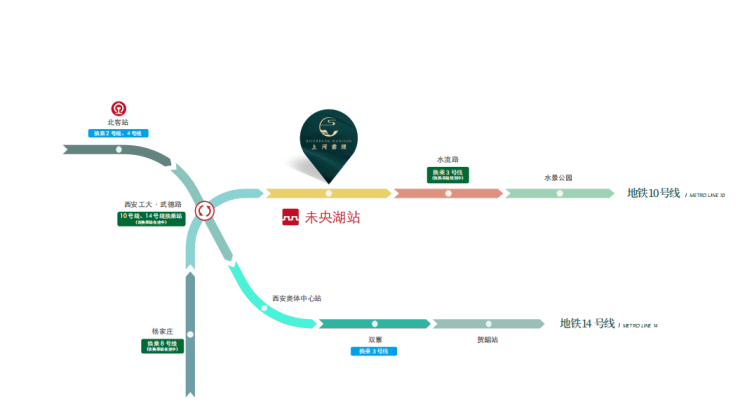 在过去的3年里,地铁14号线已开通,地铁10号线一期全线车站已封顶,隧道已贯通,预计今年底建成通车,而项目距离未央湖站不到200米,可谓是双地铁出行,在上河雲璟居住,出门即是地铁,连代步车都省了。